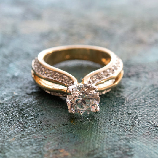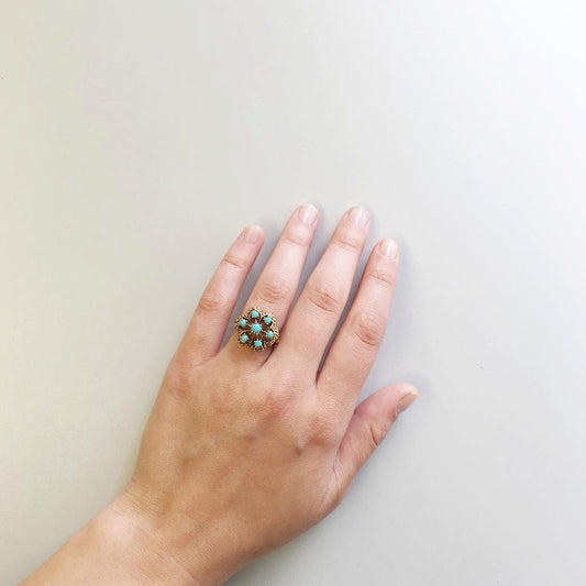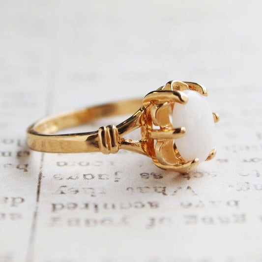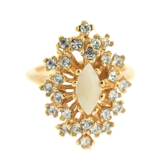 Vintage 1970s Victorian Style Cocktail Ring - Genuine Opal & Clear Austrian Crystals - 18k HGE Gold Electroplated #R221